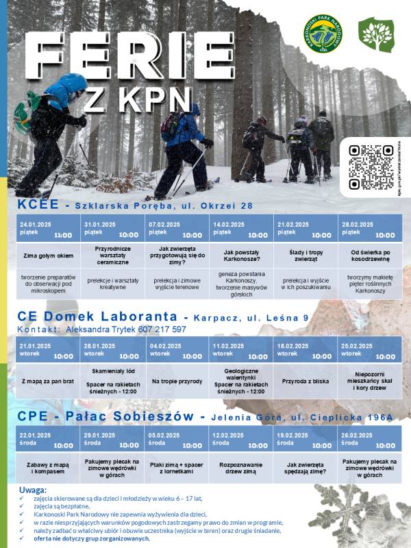 Karkonoski Park Narodowy zaprasza ciekawe wartaszty, prelekcje i wyjścia terenowe w okresie ferii zimowych.