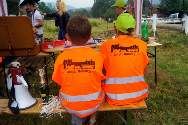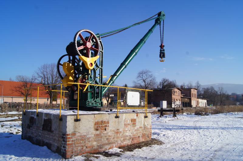 Na nieczynnej już Stacji Kowary stworzony został mini skansen z eksponatami związanymi z kolejnictwem. Najefektowniej prezentuje się stary kolejowy żuraw. Remont tego kowarskiego zabytku techniki zawdzięczamy pracom wykonanym przez członków Społecznego Komitetu Ratowania Żurawia Kolejowego w Kowarach oraz zebranych przez nich środkom. Żuraw stoi przy torze wjazdowym na stację kolejową w Kowarach od strony Jeleniej Góry stoi na betonowo -kamiennym podeście o wymiarach 2,5 m x 3 m żuraw kolejowy zbudowany ok.1905 r. Pierwowzór obrotowego żurawia słupowego skonstruowano w Anglii w 1850 r. Jego podstawowymi elementami są: kolumna, na której obraca się wysięgnica (ramie o stałym kącie nachylenia) i konstrukcja napędu. Kolumna jest łożyskowana od dołu i góry. Wysięgnica wykonana jest z rur i jej koniec znajduje się na wysokości ok. 5,2 m . Przez wysięgnice przechodzi łańcuch od napędu, przez krążek do haka, na którym zawisał ładunek. Kowarski żuraw oprócz możliwości podnoszenia i opuszczania ładunku o ciężarze do 800 kg, mógł ten ładunek obracać praktycznie o 360 stopni z wagonu na plac wyładunkowy. Ewenementem kowarskiego żurawia było to, że obsługiwało go 2 ludzi przy użyciu korb i przekładni zębatych. Jeden układ napędu służył do obracania urządzenia, a drugi do podnoszenia towarów. Dźwig zaopatrzony jest w hamulec taśmowy i zapadkę blokującą, które utrzymywały ładunek na stałej wysokości. Zasługuje on na szczególną ochronę, ze względu na konstrukcję i zastosowane rozwiązania techniczne.