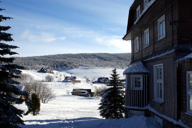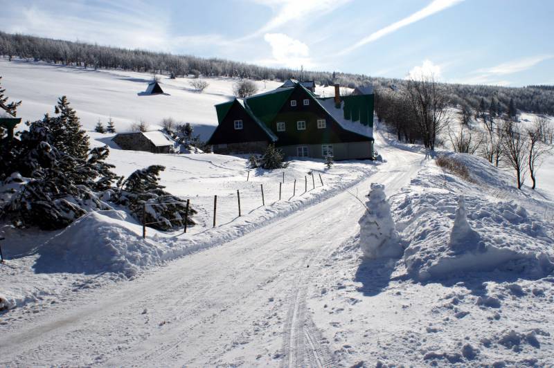 Auf dem Gebirgspass Okraj befinden sich die einzigartigen Bedingungen zum Ausüben des Skilanglaufes und der Abfahrtski sowie des Mountainbiking. Abgesteckte Spazierstrecken erlauben das Auge zu erfreuen mit den wunderschönen Panoramen des polnisch - tschechischen Grenzgebietes , und die Wanderung auf die höchste Spitze in den ganzen Sudeten (poln. Sudety) - die Schneekoppe (poln. Sniezka) liefert unvergessene Eindrücke. Der größte Vorzug dieses Teils vom Riesengebirge ist jedoch die Ruhe und die Sauberkeit der Umwelt, was jeder Gast zu schätzten weiß.